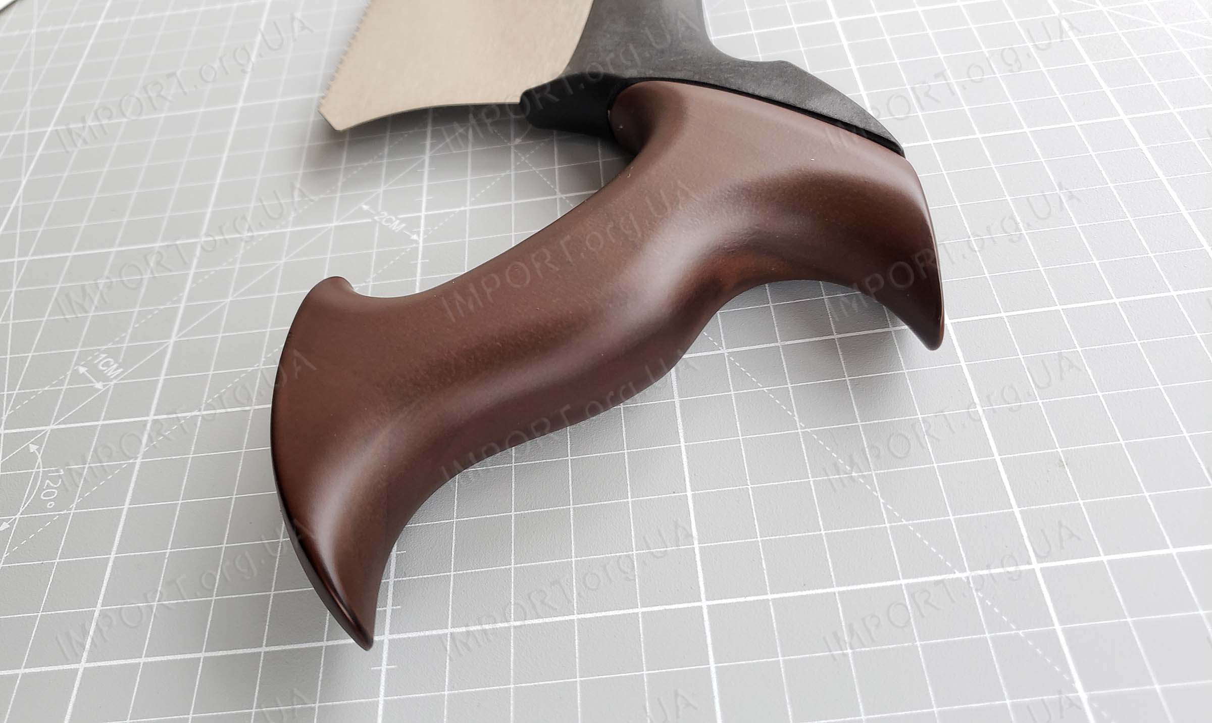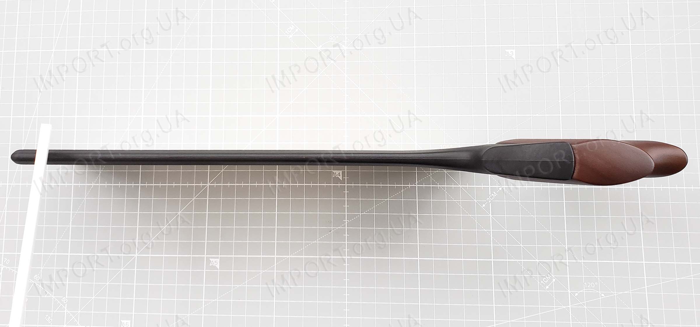 Рукоять, которая фиксируется латунным болтом, изготовлена из древесины твёрдой породы.